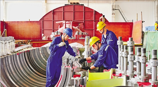 7月16日,金华市婺城区栅川工业园区内的大唐金华天然气发电项目建设现场,工人们正冒着酷暑全力推进工程建设,确保2套9H级“一拖一”燃气—蒸汽联合循环发电机组早日建成投用。据悉,该项目是浙江省“千项万亿”工程重大项目,总投资约32亿元,建成投产后将成为浙江中西部地区电力供应的重要保障,年发电量约30亿千瓦时。