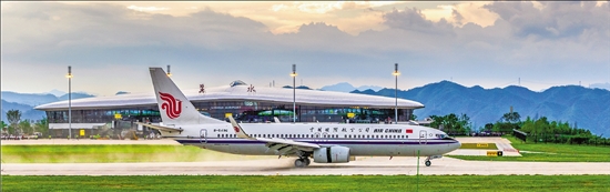 7月18日,由北京首都国际机场飞来的CA1873次航班降落在丽水机场,成为丽水机场的首个进港航班。 本报记者 邱建平 董旭明 共享联盟·丽水 程昌福 摄