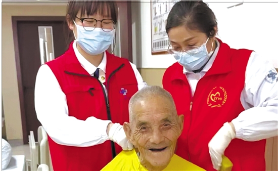 “白衣天使”化身“理发师”为患者提供免费理发服务。 图片由天台县中医院提供