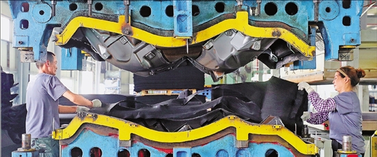 7月20日,泰顺县彭溪镇浙江瑞发科技有限公司生产车间内,工人正加紧赶制自主研发的新能源汽车机舱保护罩。据悉,该公司专攻汽车零部件制造,目前订单已排至今年9月,预计全年产值可达4亿元。 本报记者 林云龙 通讯员 赖淼莲 摄 |