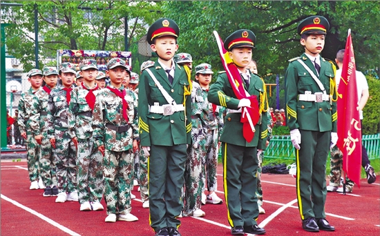 每周一,金华市站前小学国旗护卫队举行升旗仪式。