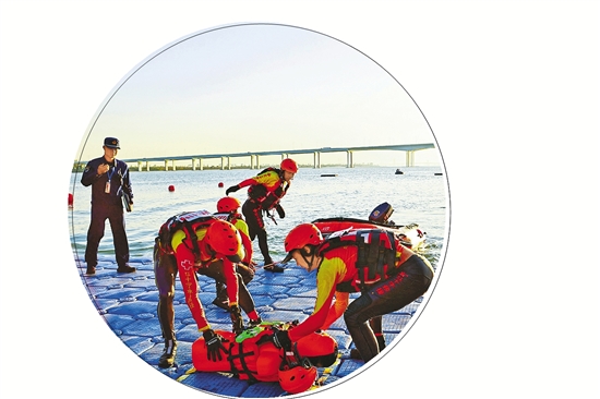 2023年11月2日至3日,绍兴市举办首届退役军人志愿服务大赛。图为参赛队员开展水上救援项目。