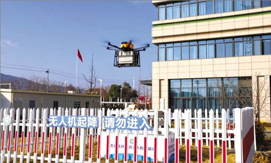 安吉低空医疗运输专线将检验标本运送至安吉县人民医院