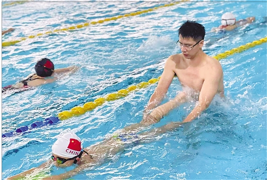 吕志武在泳池里教学。 本报记者 叶小西 摄