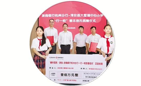 浙商银行杭州分行与淳安县大墅镇中心小学签约善本信托项目,未来3年将为学校提供100万元发展资金用于爱心助学。