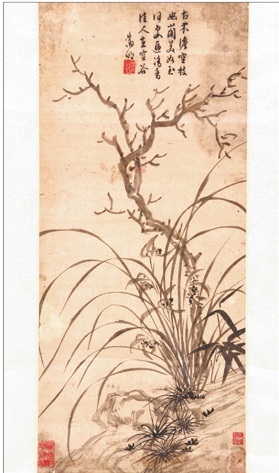 明 文徵明水墨枯木幽兰图轴 海盐县博物馆藏