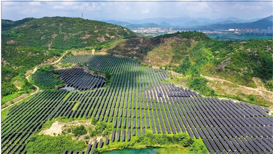 湖州市吴兴区埭溪镇东红村,昔日废弃矿坑经改造蜕变为农光互补光伏发电站,奏响生态与富民兼具的“农光曲”。