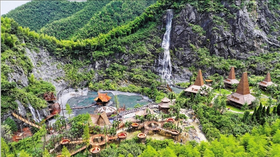 | 在安吉余村矿山遗址公园,昔日的矿山如今变身瀑布咖啡部落,从采石经济到生态经济的华丽蜕变在这里悄然上演。据了解,瀑布咖啡部落预计8月15日正式对外营业。图为8月10日拍摄的瀑布咖啡部落。 本报记者 魏志阳 通讯员 朱微 摄 |