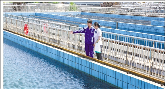 农行浙江省分行工作人员走访了解企业污水处理设施运行情况。