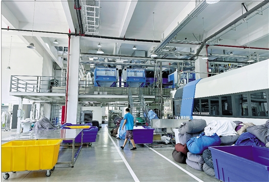位于富阳渌渚镇的雅澜(杭州)智能洗涤产线。 本报记者 宋文泽 摄