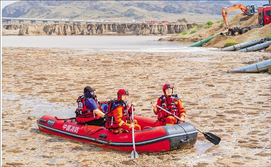 8月18日,在内蒙古巴彦淖尔市乌拉特后旗乌盖苏木,消防队员进行搜救作业。经过近20个小时的紧张搜救,截至17日21时许,已有10名遭遇山洪的野外露营人员遇难,2人仍在失联中,1人获救。700余名来自应急管理、公安、消防、自然资源、水利、卫生健康等部门的救援人员,携带着各种机械设备,沿着山洪沟道及下游周边展开地毯式搜救。 新华社记者 马金瑞 摄