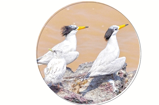中华凤头燕鸥幼鸟与亲鸟在一起