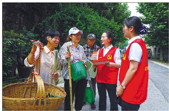 永康农商银行工作人员为村民介绍贷款政策。 胡安娜 摄