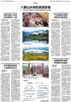 但浦江并未止步于水清岸绿。如何让好生态变成百姓口袋里的真金白银?浦阳江上游支流茜溪溪畔的新光村给出了答案。下午3时,该村“廿玖间里”创客空间主理人陈青松正忙着回复民宿订单,“以前环境差,村民都想往外搬;如今靠着门前这汪秀水,不少人都致了富。”作为浦江水晶加工“发源地”之一,新光村曾因污染严重没人愿住,如今不仅开出21家民宿、农家乐,去年全村的游客接待量达到60余万人次。“理念一转天地宽。”浦江县文旅局旅游科科长黄清清说,在水系密布的浦江,像新光村这样吃上“生态饭、旅游饭”的乡村还有不少。