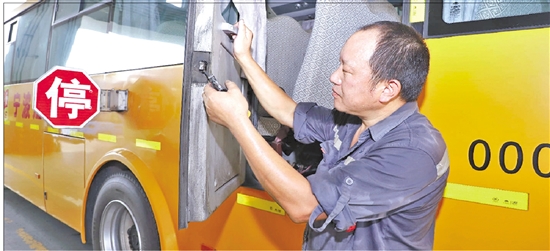 维修人员对“学知专线”车辆进行“体检”。 图片由宁波市治堵办提供