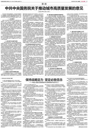 中共中央国务院关于推动城市高质量发展的意见