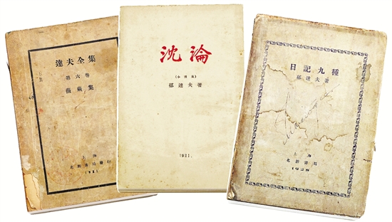 左图:《达夫全集》第六卷(1931) 中图:《沉沦》(1921) 右图:《日记九种》(1928)