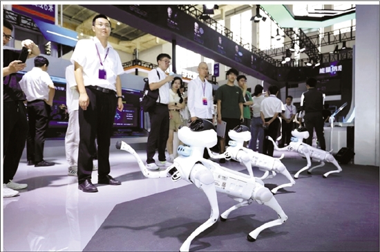 中国移动展区内,搭载AI视觉的巡检机器狗步伐矫健,数据精准回传大屏,观众沉浸体验智能交互、大模型应用与云智算服务,感受“AI世界”的无限可能。