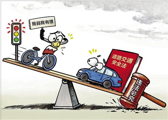 某地一女子骑自行车任性横穿马路,与正常行驶的机动车相撞,交警认定骑车者负全责。这件事向人们揭示:别再迷信“机动车必担责”,法律绝非“谁弱谁有理”,无论是开车还是骑车,守法才是硬道理。 陈昱志 金妍 作