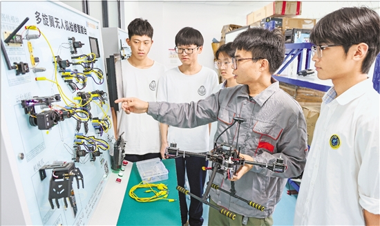 9月18日,在浙江省机电技师学院的无人机装调实训室内,学生们正在老师的指导下学习调试和维修各类无人机。随着低空经济的兴起,无人机维修师成热门紧缺职业。据悉,该校的无人机应用技术专业自2018年开设以来热度持续上升,今年新生数量较去年增长100%。 本报记者 金思成 通讯员 陈业 文/摄 |