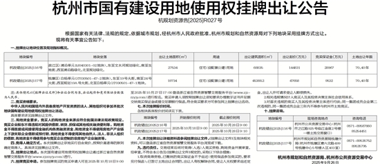 杭州市国有建设用地使用权挂牌出让公告