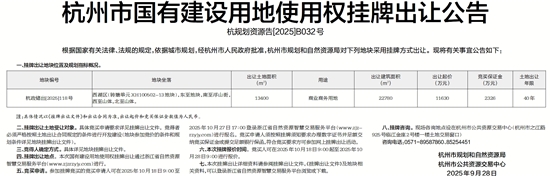 五、竞买申请。参加挂牌竞买的竞买申请人可在2025年10月18日9∶00至2025年10月27日17∶00登录浙江省自然资源智慧交易服务平台(www.zjzrzyjy.com)进行报名。竞买申请人须按照挂牌须知要求办理数字证书并足额交纳竞买保证金或提交足额银行保函,符合竞买要求方可参加网上挂牌出让活动。