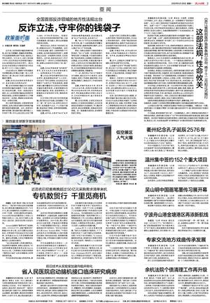 | 低空展区 人气火爆 在第四届全球数字贸易博览会数智出行馆内,低空经济展区成为全场焦点,集中展示一批技术领先的低空飞行产品与解决方案。近年来,杭州着力构建“3+1”低空应用体系,重点发展低空治理、物流和文体旅三大特色领域,低空经济正加速形成可感知、可落地的产业生态。图为沃飞航空飞行器成了数贸会上的“网红”。 本报记者 董旭明 林云龙 摄 |