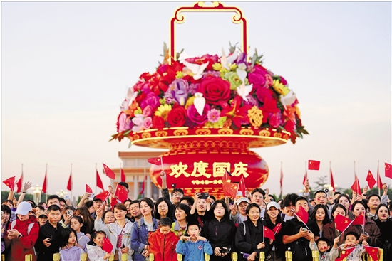 10月1日清晨,隆重的升国旗仪式在北京天安门广场举行,庆祝中华人民共和国成立76周年。 新华社记者 邢广利 摄