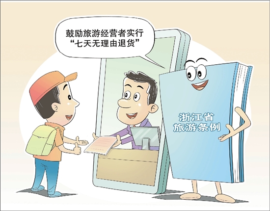 | 10月1日起,修订后的《浙江省旅游条例》正式施行。该条例进一步改善游客的旅游购物体验,鼓励引入网络平台的七天无理由退货制度维护消费者权益。有专家表示,率先给出承诺的商家,在游客心中自然会形成比较优势,推动形成新的市场风气,改善旅游体验。 王琪 作 |