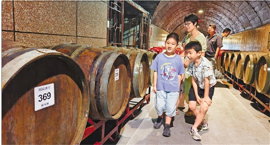 游客参观朗园酒业酒窖。 本报记者 周楷华 摄