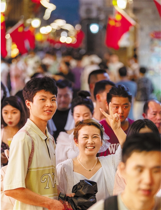 10月5日晚,临海台州府城紫阳街上游人如织。 拍友 胡肖飞 摄