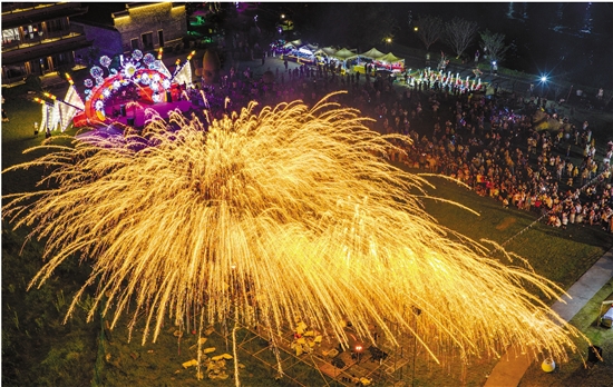 10月5日晚,嵊州越剧小镇,非遗盛宴与梦幻灯海交织,热浪与欢呼声点燃现场氛围。 拍友 裘坚钢 摄