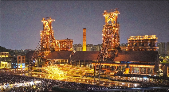 10月7日晚,杭州大运河杭钢公园,月色下绽放的非遗“打铁花”照亮了昔日的钢厂高炉,吸引众多市民游客前往观看。今年是杭钢半山钢铁基地生产线关停10周年,褪去“工业面容”的杭钢已变成年轻时尚的潮流“秀场”。 本报记者 倪雁强 通讯员 柳景春 摄 |