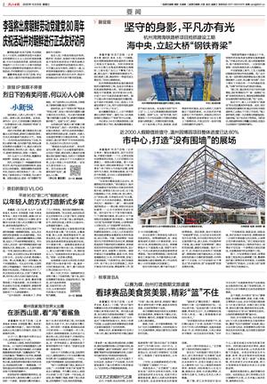 如火如荼的工程现场也与群众生活息息相关。园博园跨线桥,是一座连接南园和北园的人行景观桥梁,全长467.62米,桥身钢结构已合龙。桥梁横跨温州主干道瓯海大道,假期车来车往。“今后大家途经此处能直接观赏园博景观。”温州园博园跨线工程项目部副总工林强介绍,为不影响群众出游,确保瓯海大道交通顺畅,桥上作业利用晚上10时至凌晨6时加紧施工。