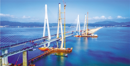 | 10月10日上午,随着最后一节钢箱梁完成吊装,宁波市域铁路象山港跨海大桥的南侧边跨顺利合龙。接下来将继续推进北侧边跨合龙及中跨合龙施工,为整桥贯通做最后冲刺。 本报记者 贺元凯 王凯艺 通讯员 王昊 甬轨君 摄 |