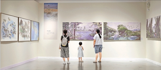 “徜徉自然之境——大师们的艺绘人生与博物情怀”画展现场。 本报记者 徐文迪 摄