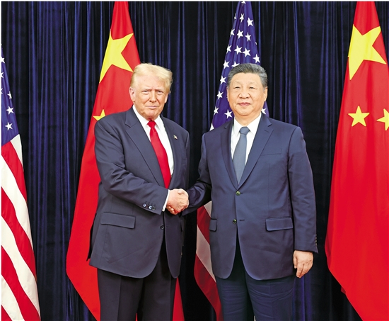 当地时间10月30日,国家主席习近平在釜山同美国总统特朗普举行会晤。 新华社记者 黄敬文 摄