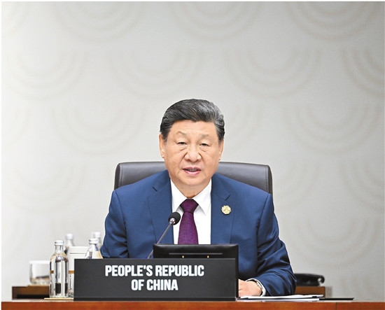 当地时间11月1日上午,国家主席习近平在韩国庆州出席亚太经合组织第三十二次领导人非正式会议第二阶段会议,并发表题为《共同开创可持续的美好明天》的重要讲话。 新华社记者 谢环驰 摄
