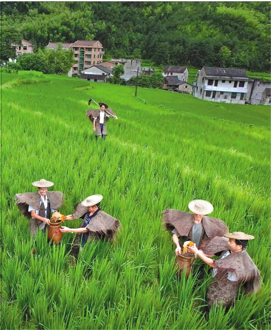 青田龙现村村民在稻田中捕捞田鱼。 青田县委宣传部供图