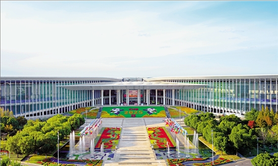 近日,国家会展中心(上海)的外观装饰工作基本完成。“四叶草”焕然一新,迎接将于11月初开幕的第八届中国国际进口博览会。 新华社记者 刘颖 摄