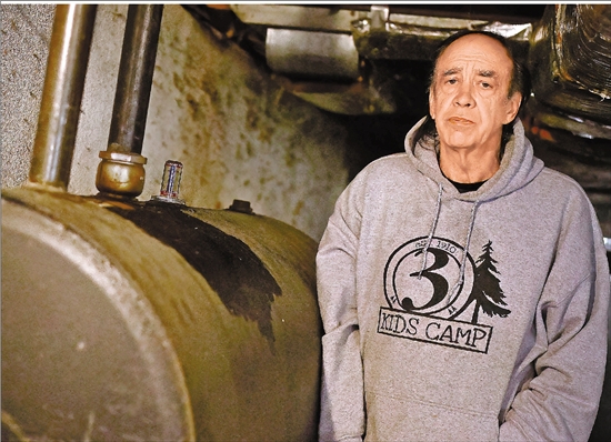 当地时间2025年10月27日,美国康涅狄格州布隆菲尔德,低收入家庭能源援助计划成员马克·贝恩站在他的油箱旁,他希望自己有足够的燃油来度过政府“停摆”。