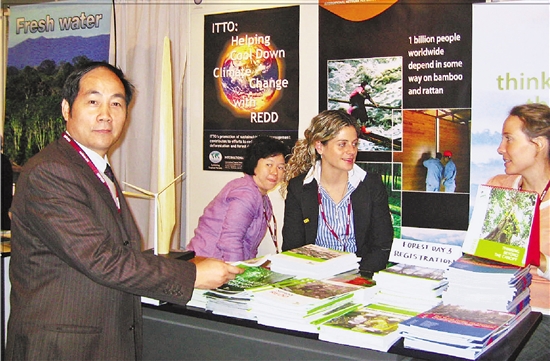 周国模应邀出席哥本哈根联合国气候变化大会,并在展示区了解各国在应对气候变化方面的研究进展。 受访者供图