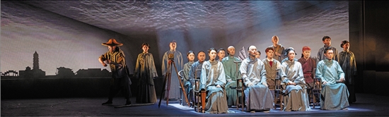 话剧《北上》剧照:小波罗一行人抵达运河重镇聊城。 杭州话剧艺术中心供图