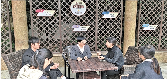 玉兰社区、物业、居民代表在议事廊开展关于玉兰花园小区污水改造工程收尾工作的议事协商。 金利芬 摄