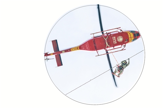 国网温州供电公司应用直升机吊索法,对220千伏瓯湖线开展光缆抢修。 张健 摄