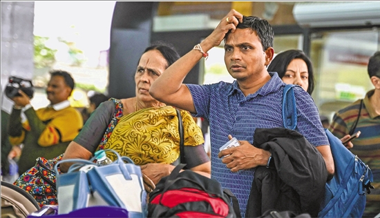 12月6日,在印度班加罗尔的机场,人们在印度靛蓝航空公司的自助服务机旁等待。 新华社/法新