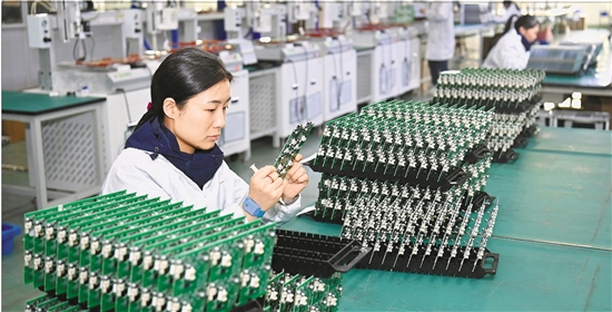 12月8日,位于东阳市南马镇花园村的花园金波科技股份有限公司生产车间内,员工在进行智能锁线路板检验、成品组装及测试,赶制订单。临近年底,东阳市各企业开足马力生产,确保订单按时交付。 共享联盟·东阳 包康轩 王江红 摄 |