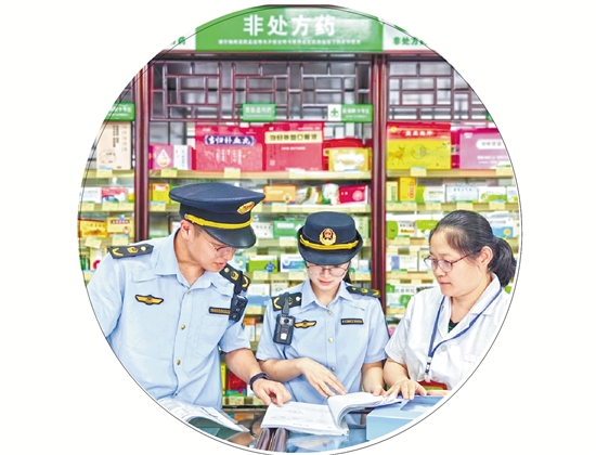 绍兴市场监管人员在药店开展联合检查,整合多项检查事项,切实为经营主体减负。