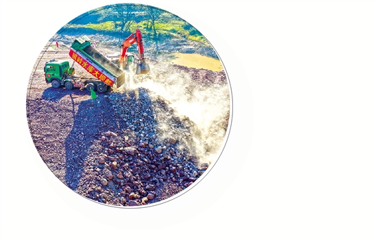 镜岭水库大坝枢纽区施工现场一角