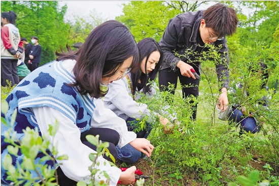 《园林绿化养护劳动实践》课上,学生在学习树木整形修剪技能。 通讯员 陈胜伟 摄